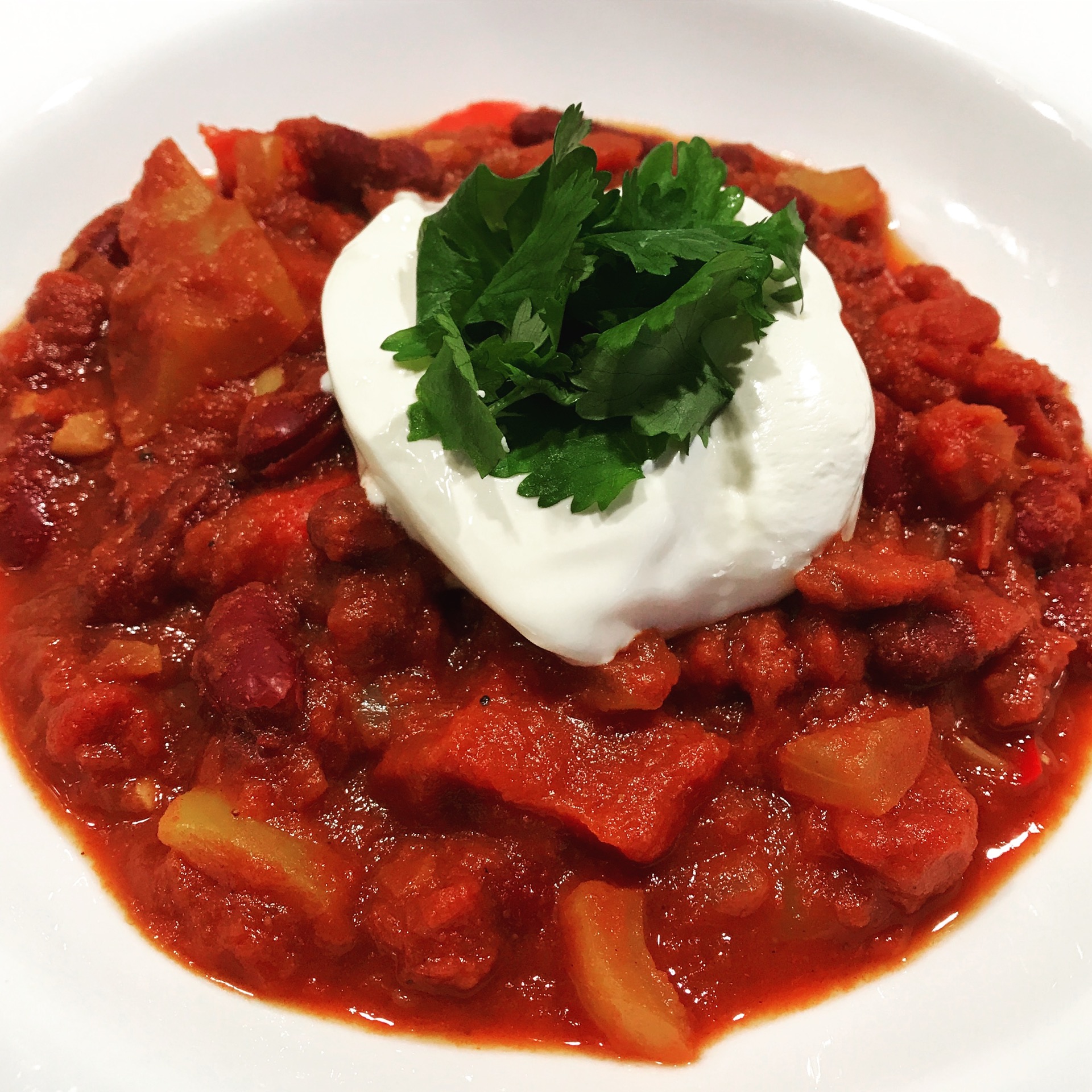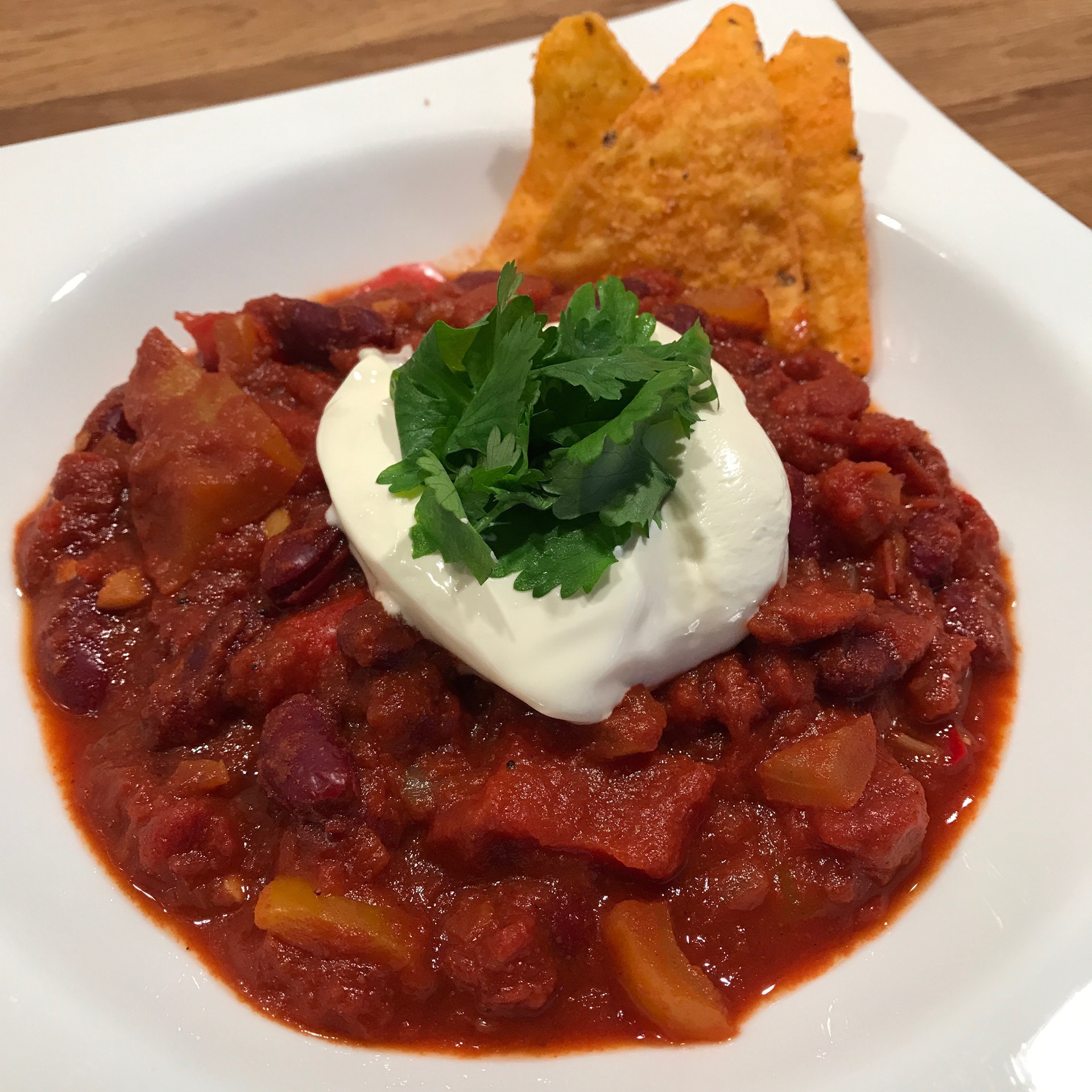 - Server med rømme/kesam, nachochips og frisk koriander. Topp gjerne med revet ost mens suppen er varm så osten smelter litt. Nam!